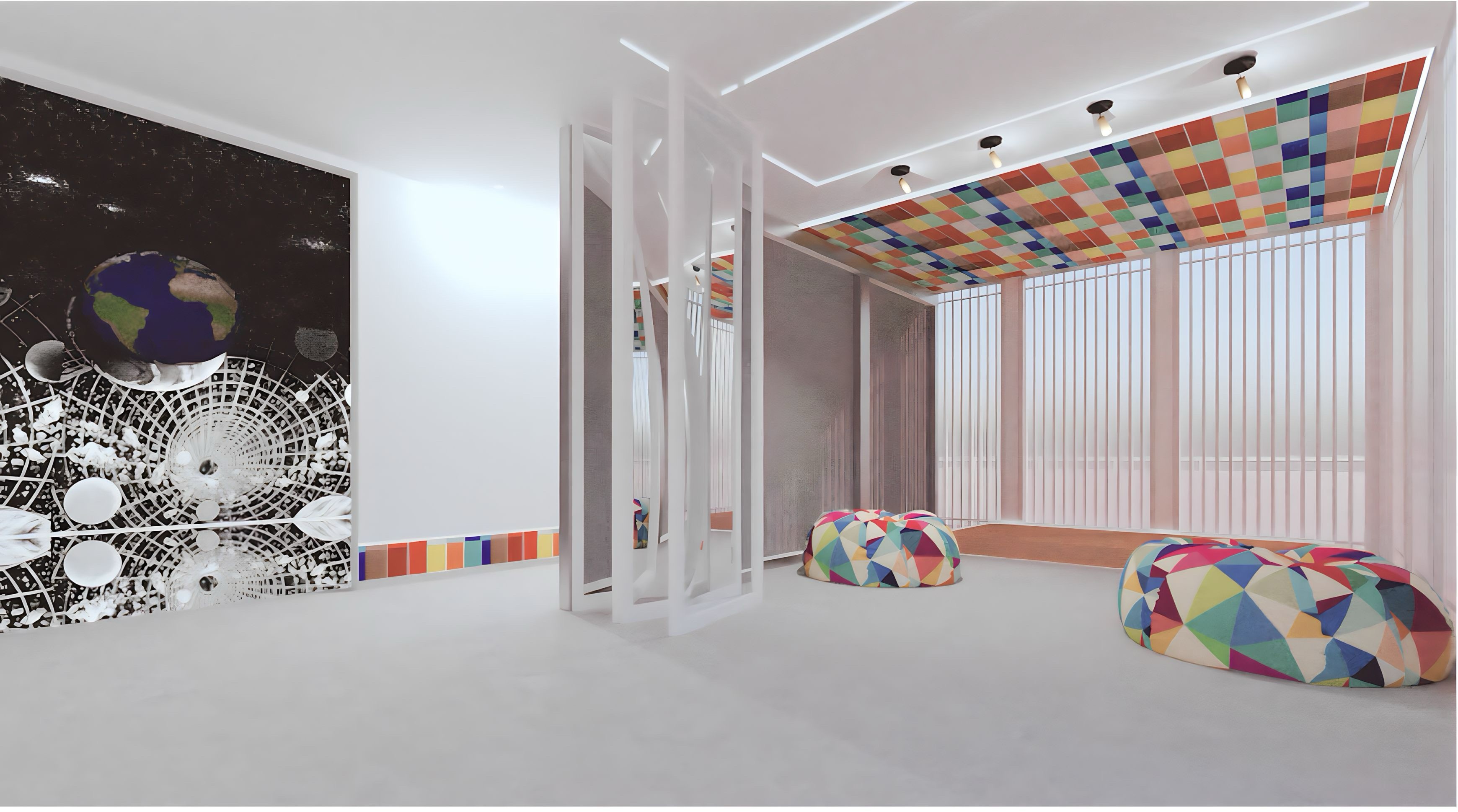 El espacio invita a la interacción, donde colores y reflejos cambian según la perspectiva. Esta transformación dinámica crea una experiencia única en cada recorrido.