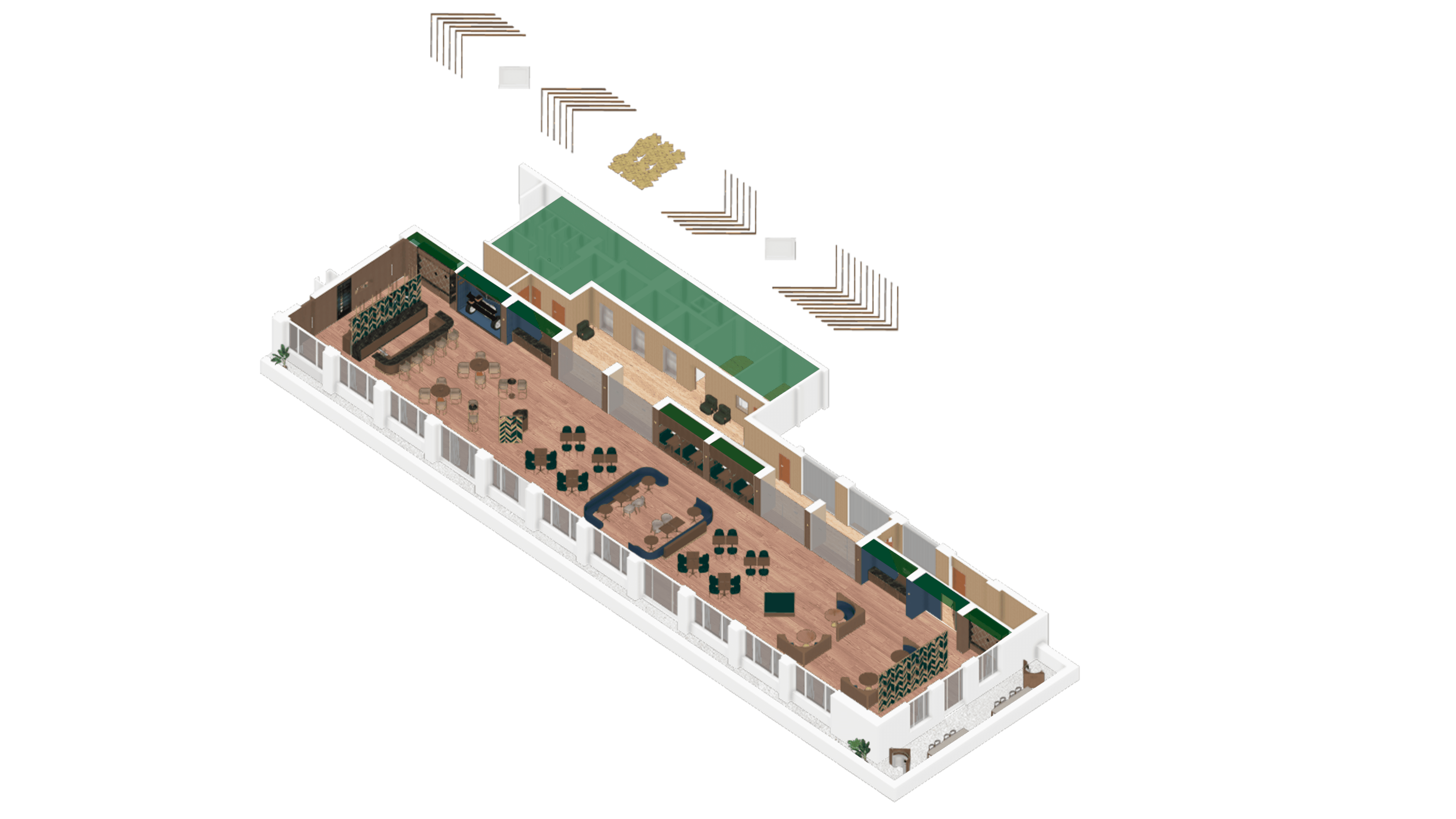 El diseño de este baño responde al concepto “Bahía”, entendido como un espacio que, al igual que una ensenada protegida, ofrece refugio y contención. Inspirado en la analogía entre las características físicas y sensoriales de una bahía y las aspiraciones estéticas de la pareja, el proyecto combina funcionalidad, serenidad y elegancia.La paleta cromática se compone de azules profundos, que remiten a la profundidad marina; tonos neutros y arenas, que evocan la costa; y acentos dorados, que sugieren la calidez del sol.