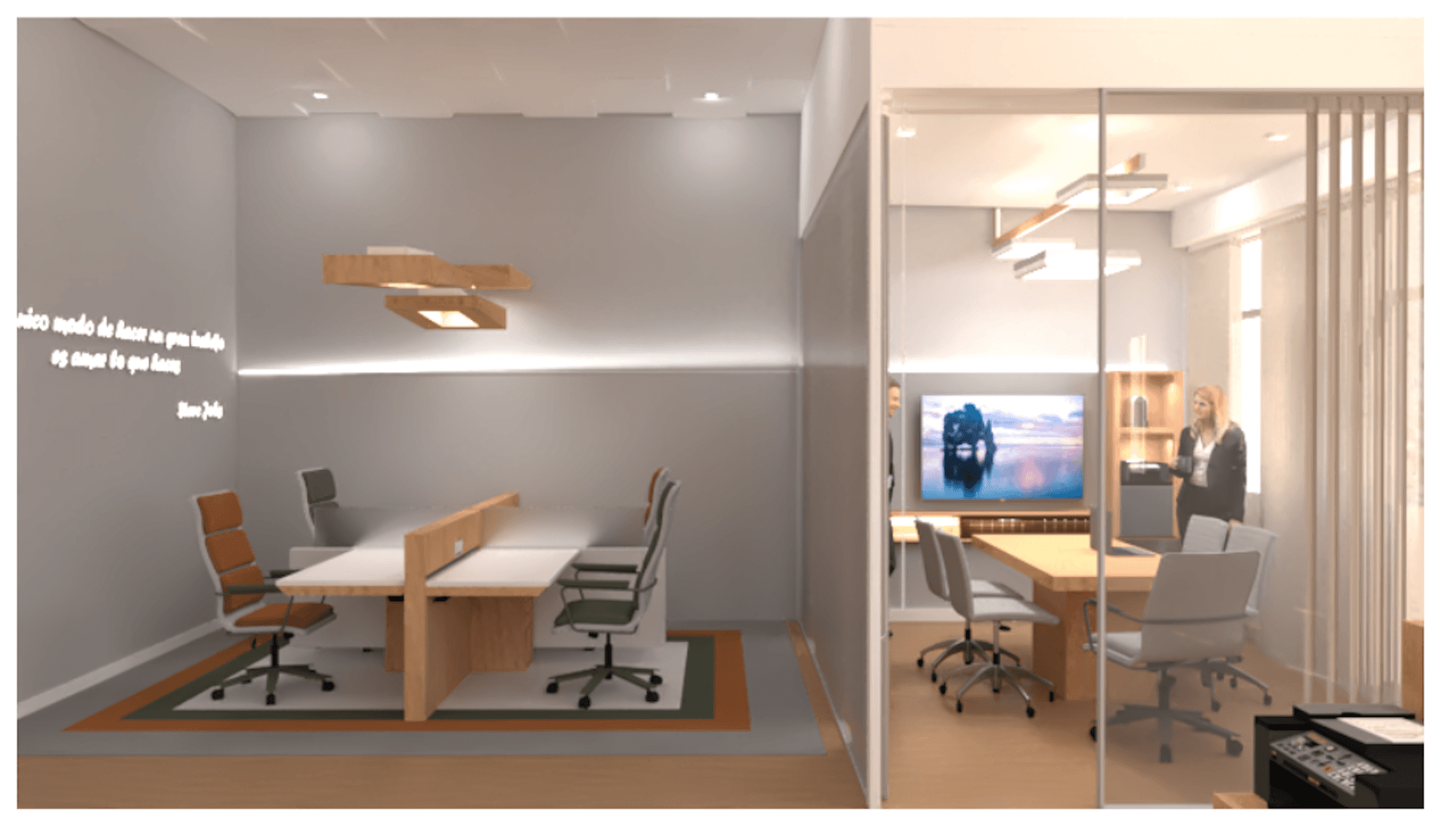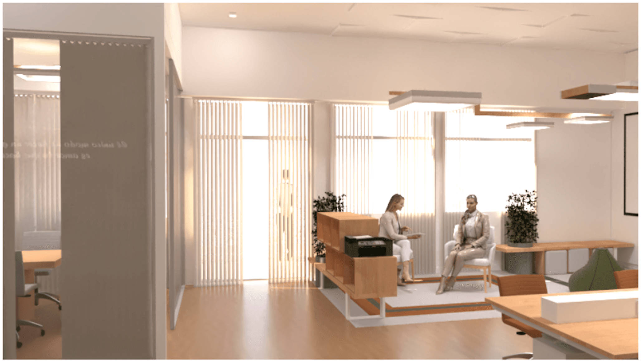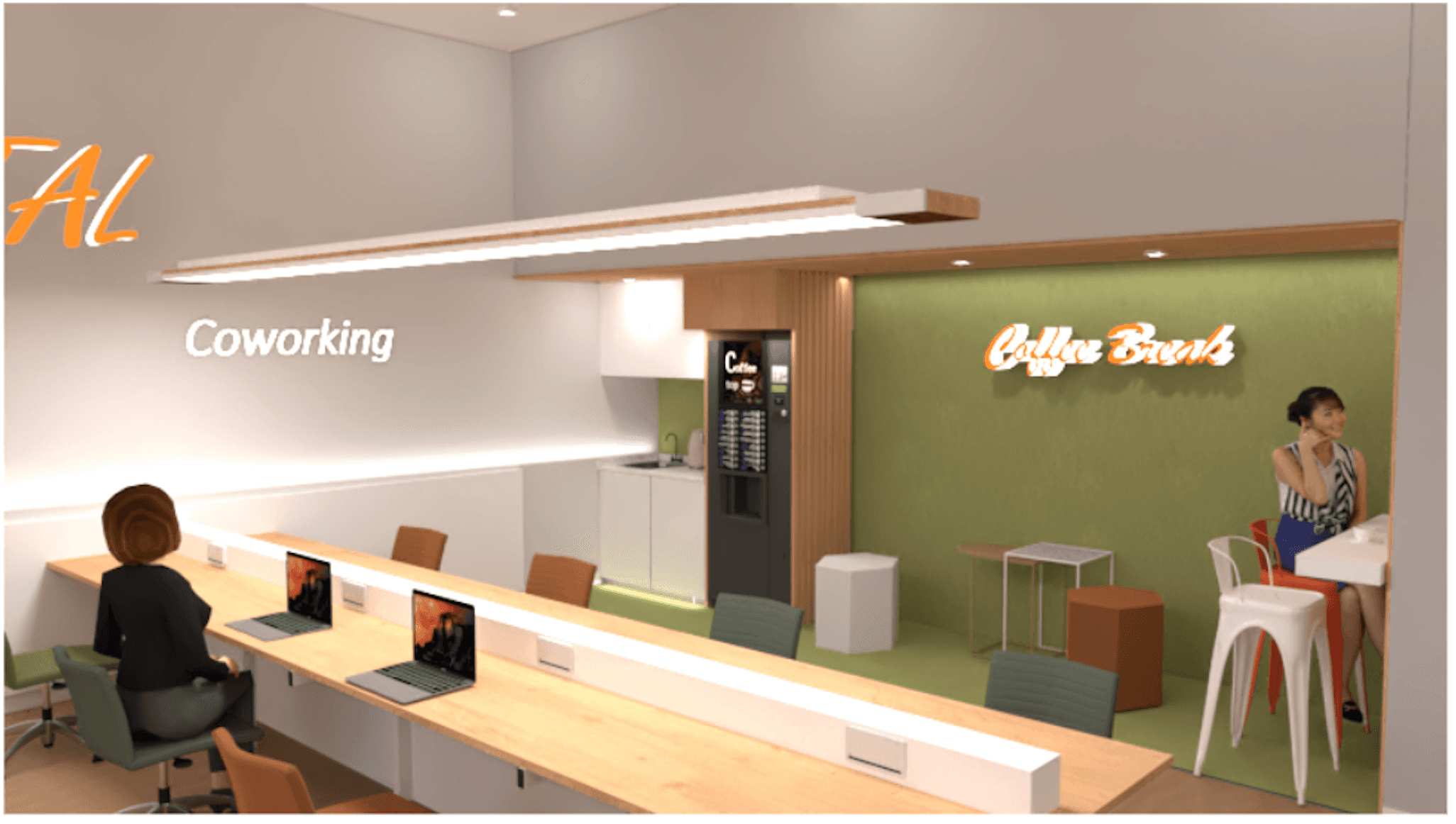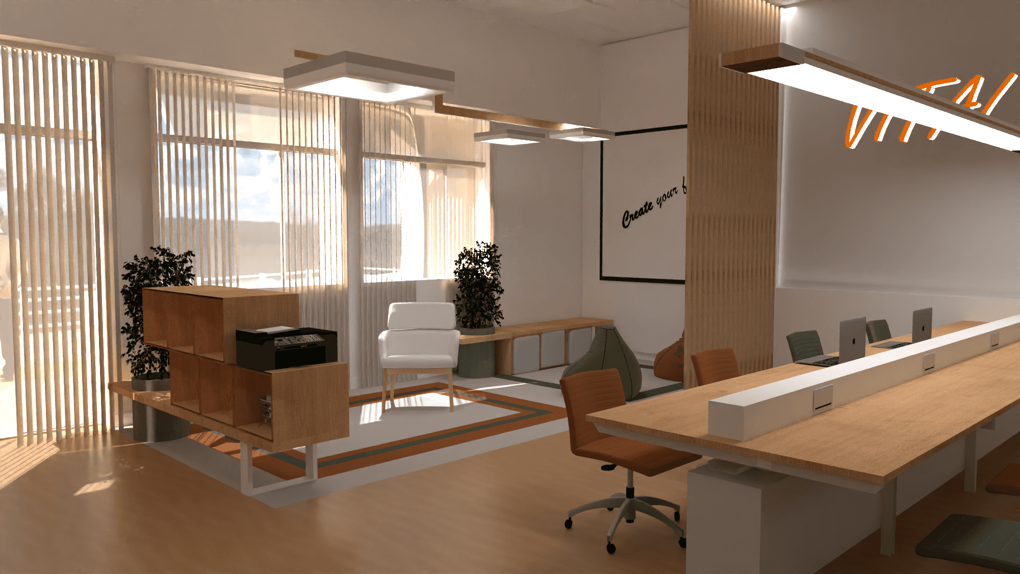 VITAL es un espacio de trabajo flexible dentro de la Municipalidad de Alberti, diseñado para fomentar el dinamismo y la colaboración. Con un diseño abierto y adaptable, ofrece áreas para trabajo individual, reuniones y socialización. Una paleta neutra con acentos en color naranja y verde, muebles retroiluminados y materiales reciclados, refuerzan su identidad moderna y sustentable.