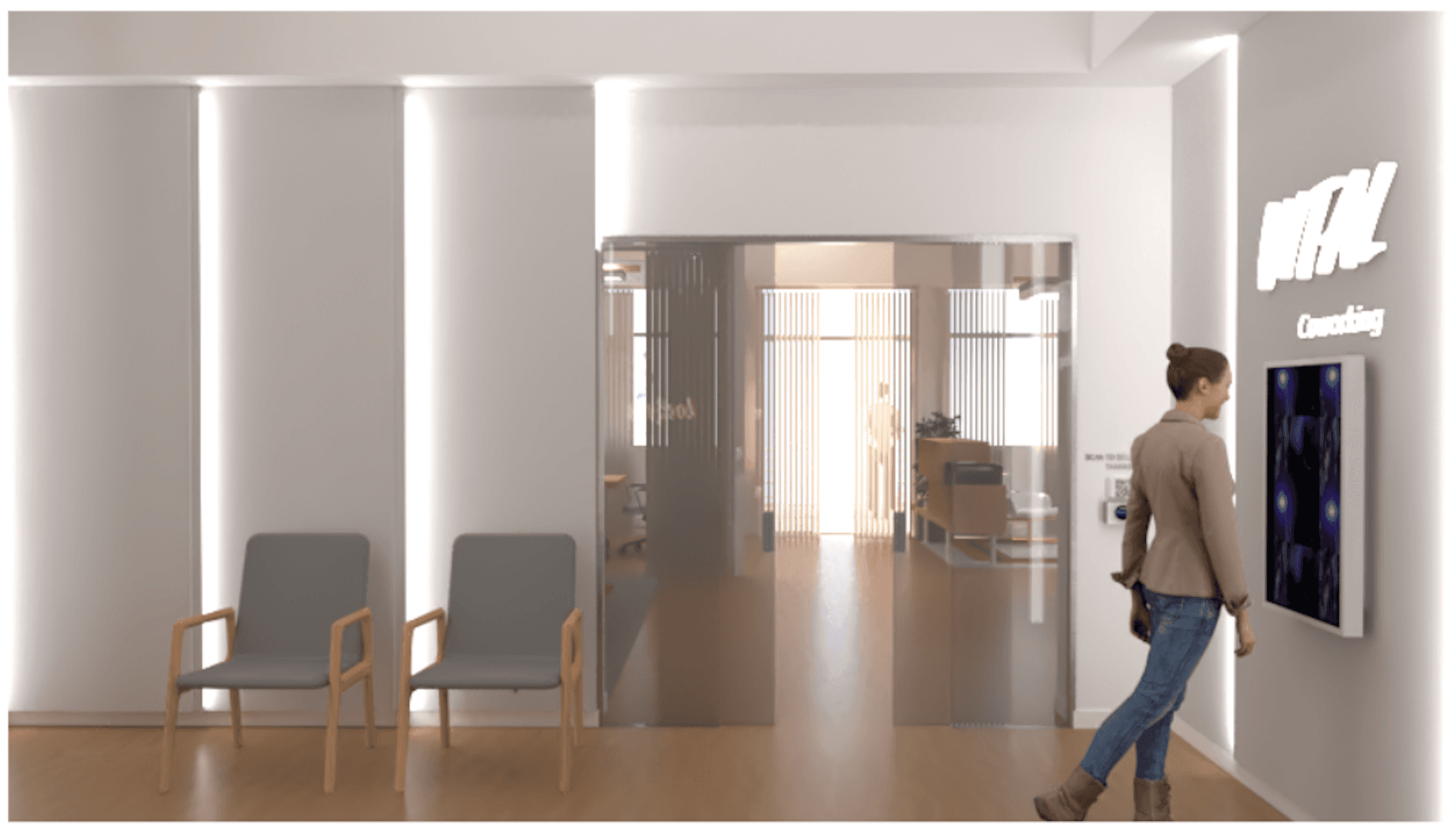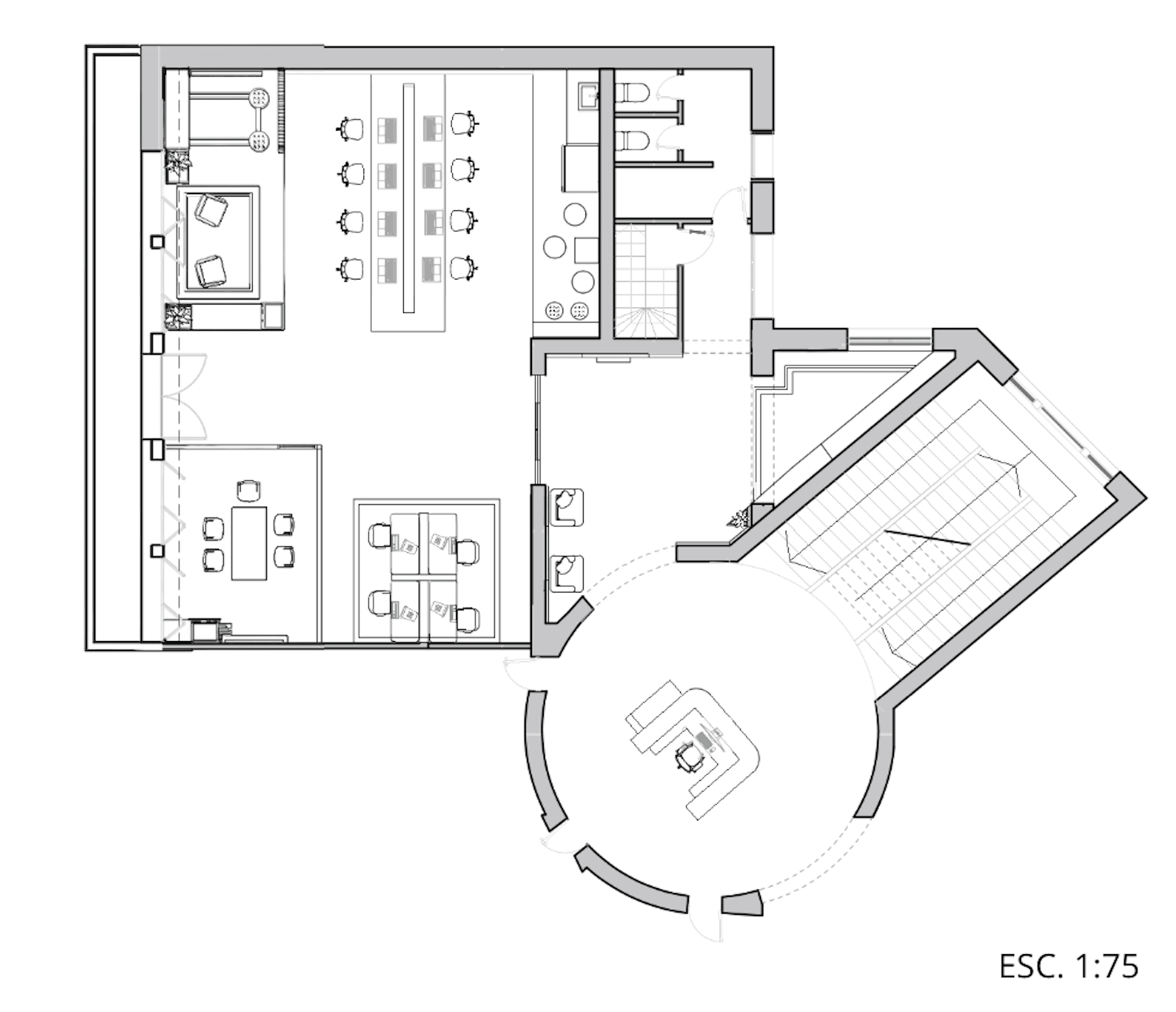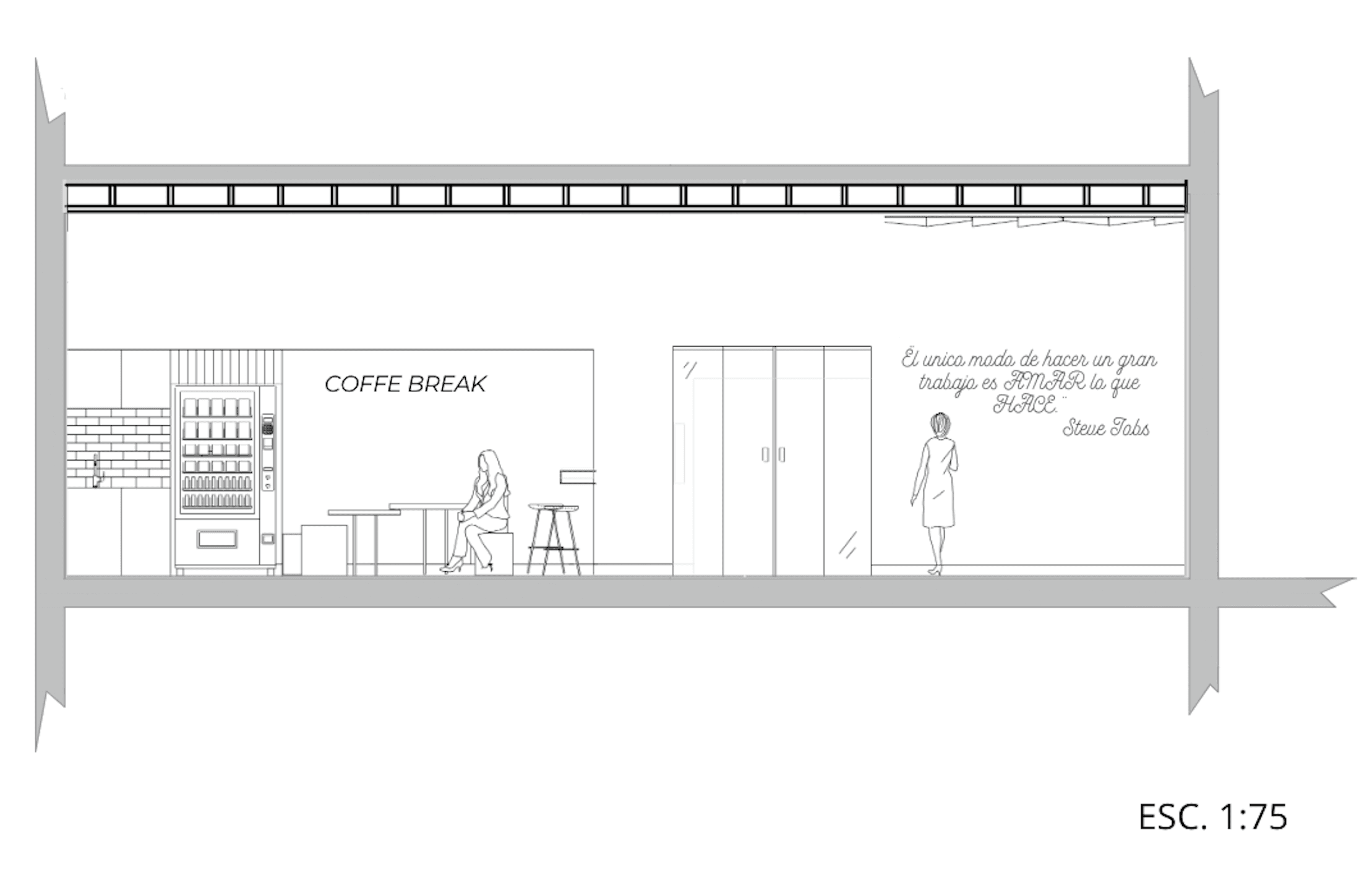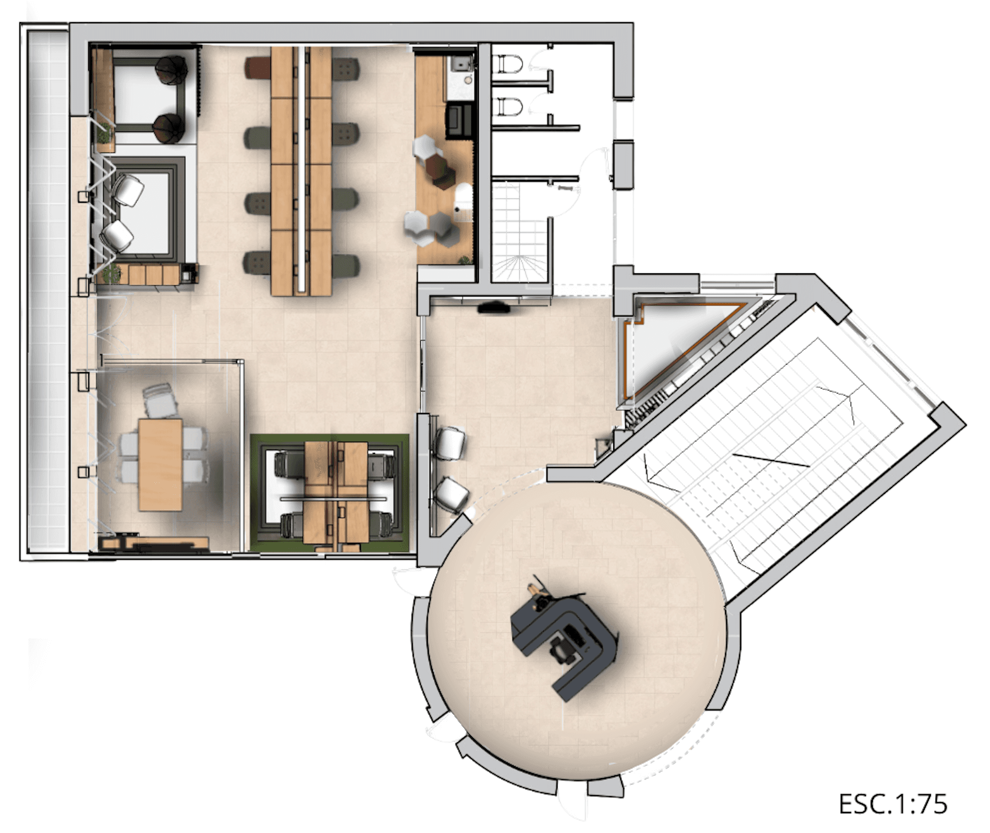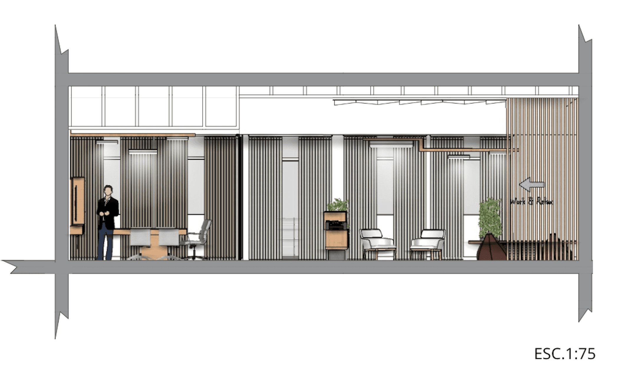 VITAL es un espacio de trabajo flexible dentro de la Municipalidad de Alberti, diseñado para fomentar el dinamismo y la colaboración. Con un diseño abierto y adaptable, ofrece áreas para trabajo individual, reuniones y socialización. Una paleta neutra con acentos en color naranja y verde, muebles retroiluminados y materiales reciclados, refuerzan su identidad moderna y sustentable.