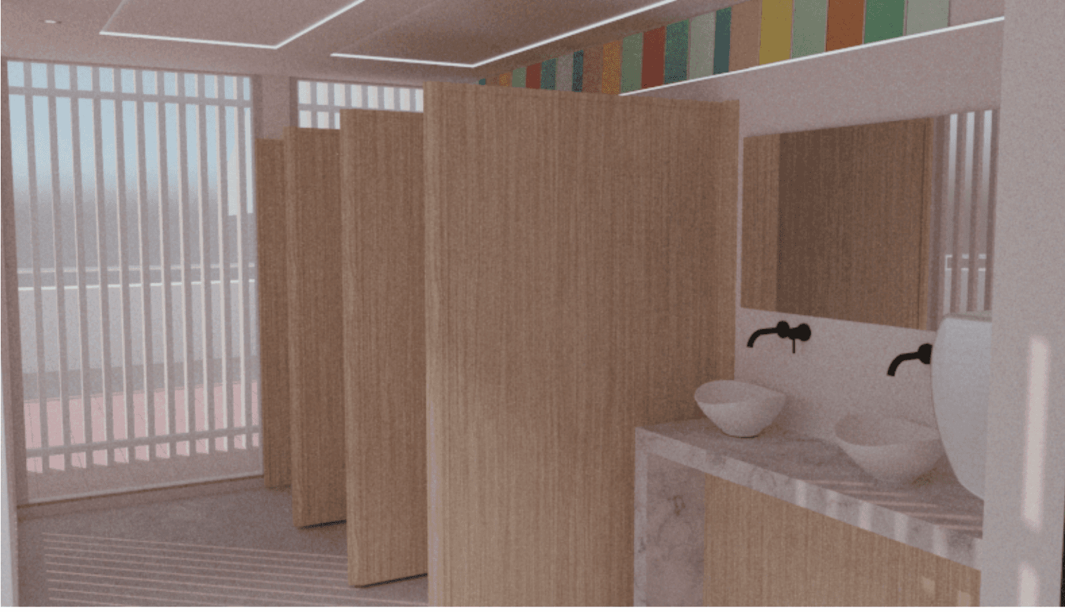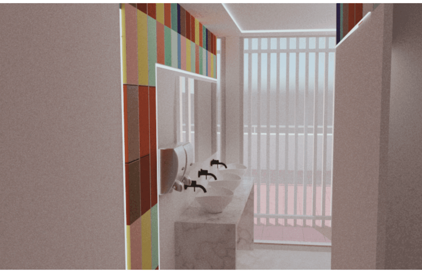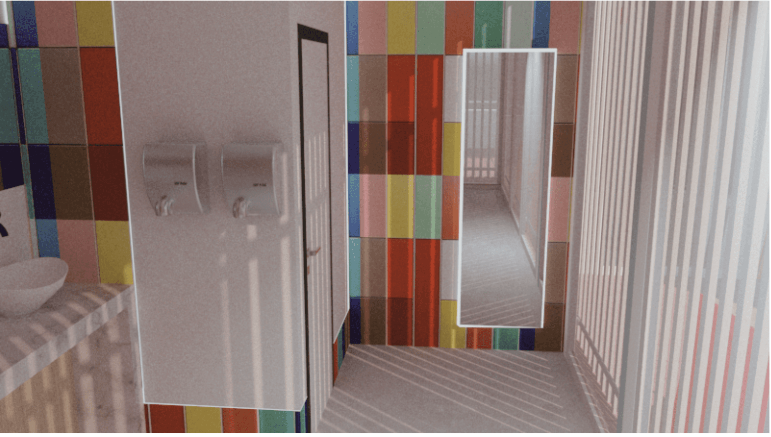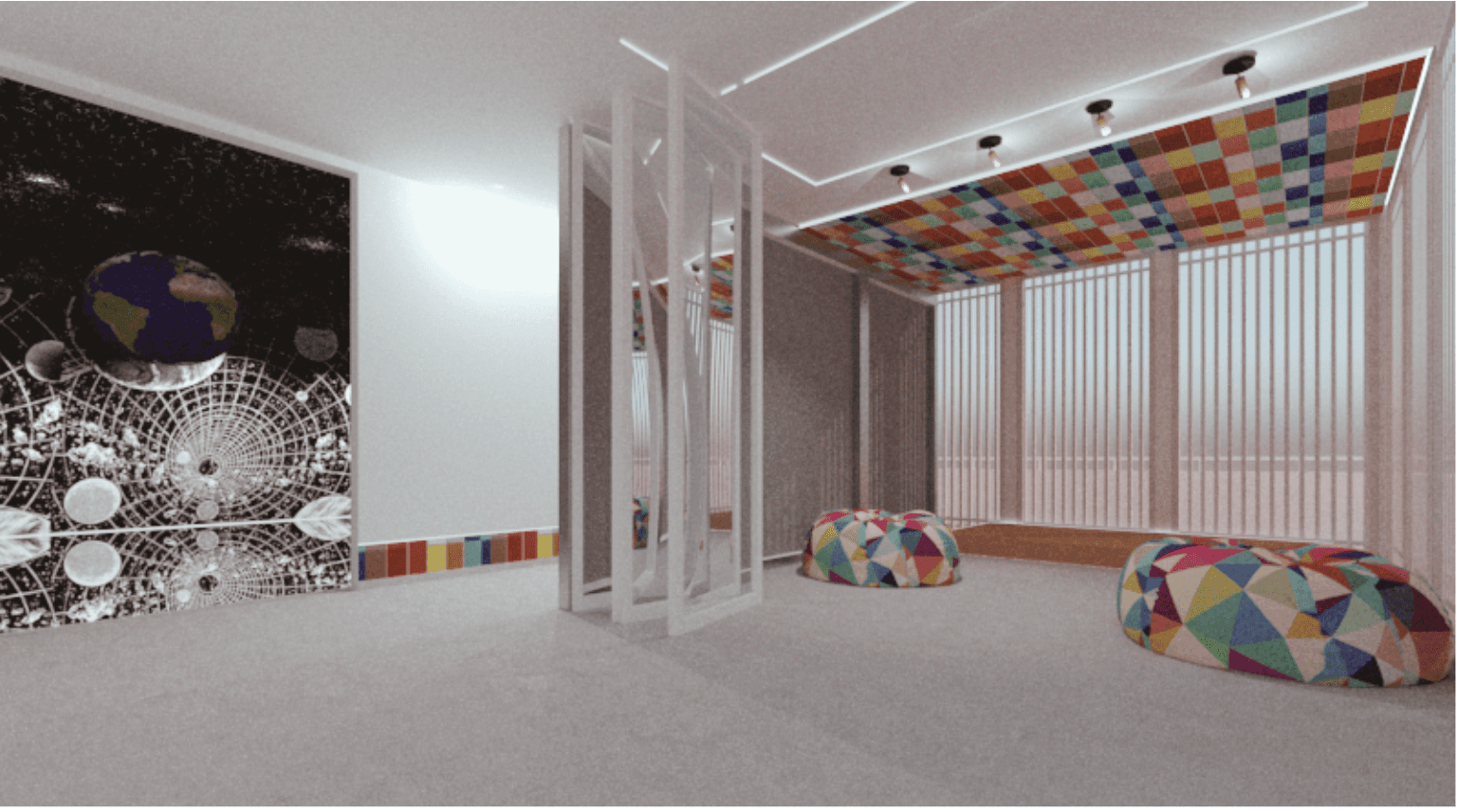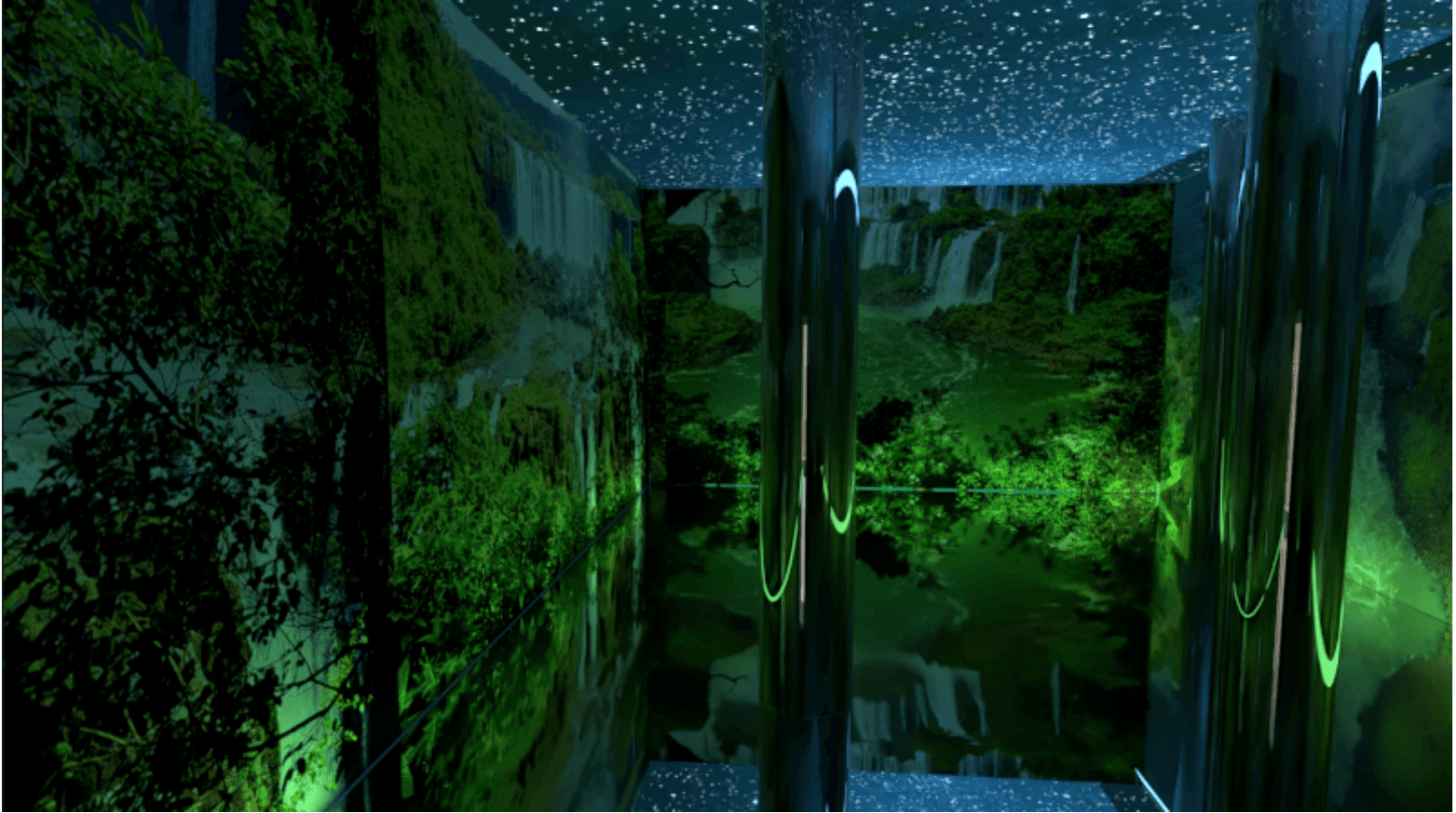 El espacio invita a la interacción, donde colores y reflejos cambian según la perspectiva. Esta transformación dinámica crea una experiencia única en cada recorrido.