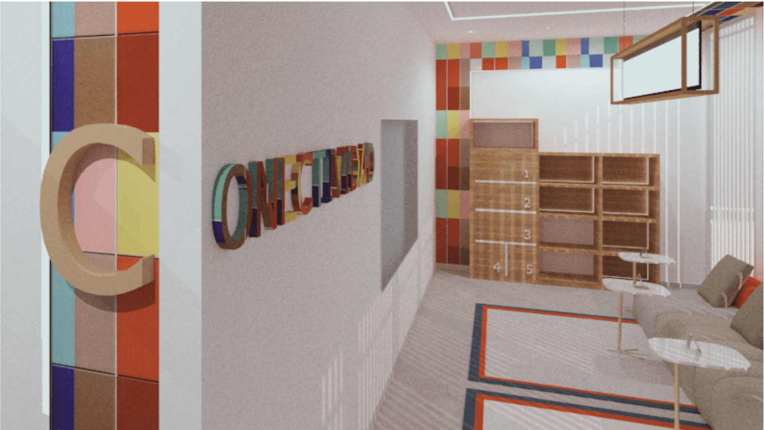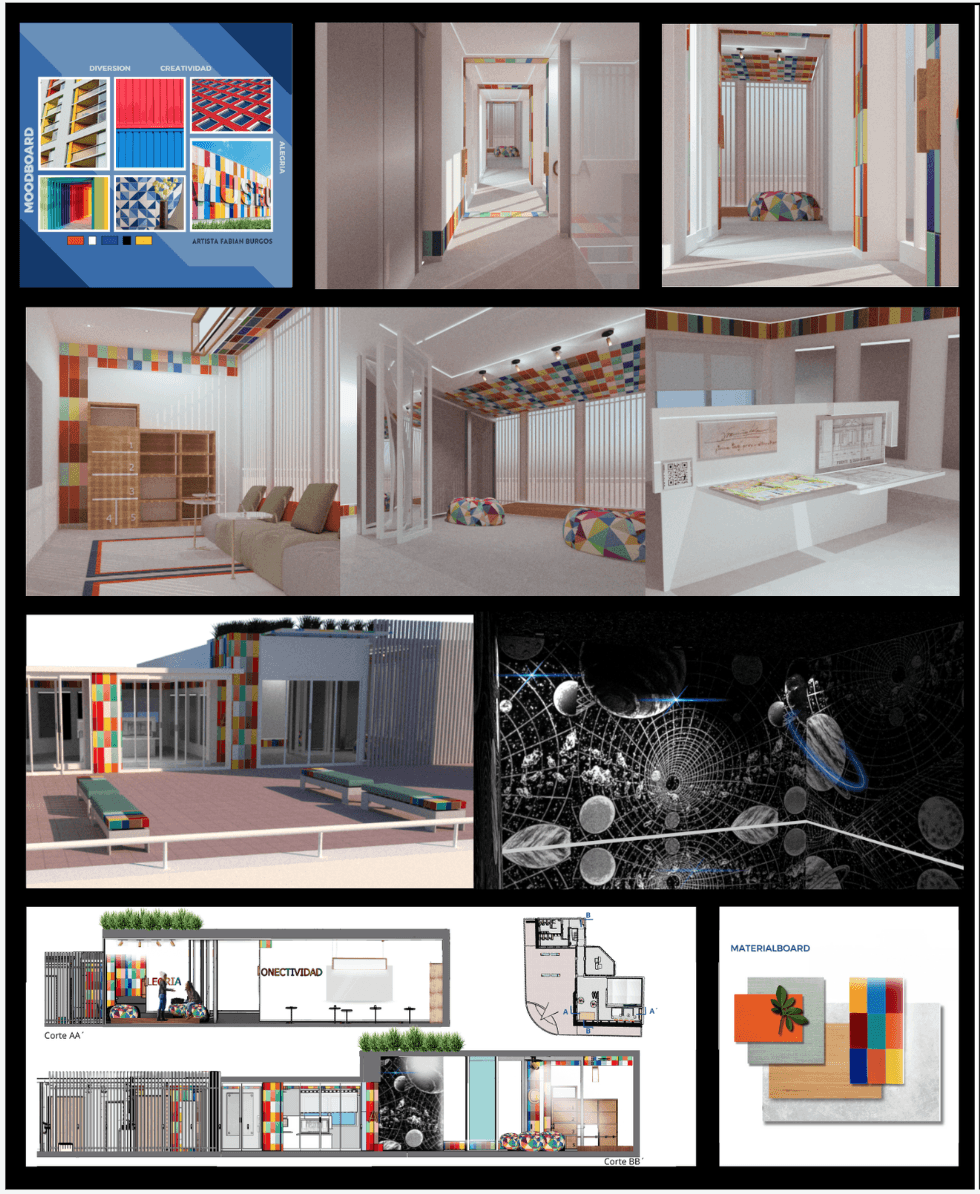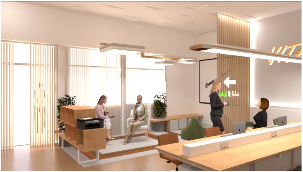 VITAL es un espacio de trabajo flexible dentro de la Municipalidad de Alberti, diseñado para fomentar el dinamismo y la colaboración. Con un diseño abierto y adaptable, ofrece áreas para trabajo individual, reuniones y socialización. Una paleta neutra con acentos en color naranja y verde, muebles retroiluminados y materiales reciclados, refuerzan su identidad moderna y sustentable.