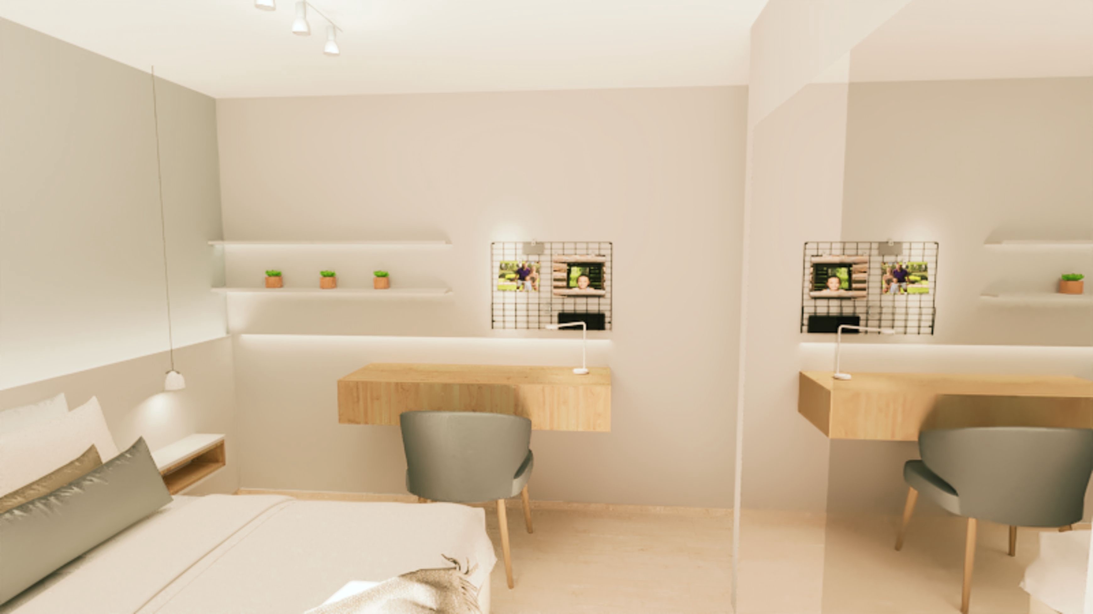 Combina elegancia y funcionalidad en un espacio armonioso y acogedor. Se utilizan materiales nobles, una paleta neutra y mobiliario de líneas depuradas para transmitir serenidad. La distribución optimiza el descanso, el almacenamiento y la comodidad, logrando un equilibrio entre estética y practicidad.